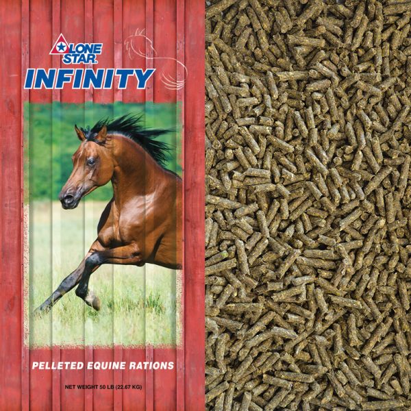 The recommended feeding rate for INFINITY COMPLETE OS is shown below. Do not feed free choice. Provide plenty of good quality of hay or pasture along with a source of fresh, clean water. If you feed by dry measure, periodically weigh the daily feed to ensure that the proper amount is being fed. Observe the condition of you horse over a period of time. The recommended feeding rates may be increased or decreased to keep your horse in the desired condition. Changes in feed or feeding rate should be made gradually over several days. Changes in feeding rate should not exceed 1 pound per day. Feed at regular times at least twice daily. If horse is hot, excited, or ill, delay feeding. Do not allow horse to over-consume or eat rapidly. An effective internal parasite control program is essential to your horse’s health. Observe your horse’s condition regularly. Consult your veterinarian if any problems arise.