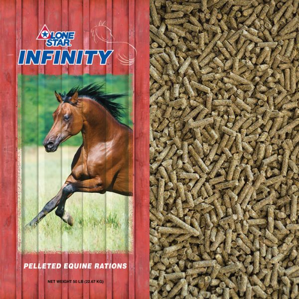 The recommended feeding rate for INFINITY SENIOR CN is shown below. Do not feed free choice. Provide plenty of good quality hay or pasture along with a source of fresh, clean water. If you feed by dry measure, periodically weigh the feed to ensure that the proper amount is being fed. Observe the condition of your horse over a period of time. The recommended feeding rates may be increased or decreased to keep your horse in the desired condition. Changes in feed or feeding rate should be made gradually over several days. Changes in feeding rate should not exceed 1 pound per day. Feed at regular times at least twice daily. If horse is hot, excited, or ill, delay feeding. Do not allow horse to over-consume or eat rapidly.
