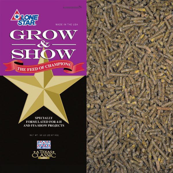 A medicated, alfalfa, corn, and soybean hull based ration formulated to provide the extra nutrition needed to produce champion show goats.