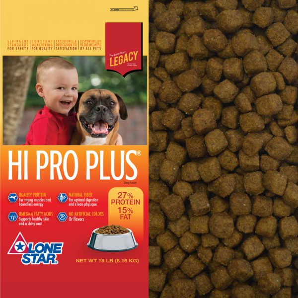 Lone Star® Hi Pro Plus® is formulated to meet the nutritional needs of normally active adult dogs. Food requirements will vary depending on your dog’s age, activity, and condition. Monitor your dog’s weight. If you notice an overweight or underweight condition, vary the amount of Hi Pro Plus accordingly. Your dog will still be getting all the nutrition he or she needs.