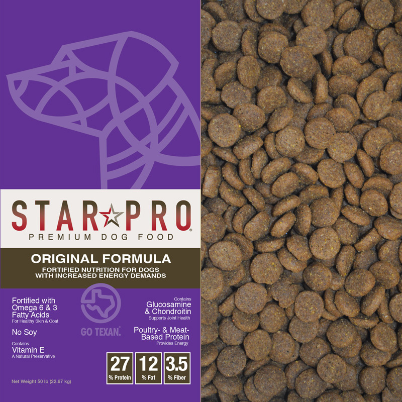 Puppies: Start puppies on moistened Star Pro® as soon as they begin to nibble on solid food (usually 3 to 5 weeks of age). While they continue nursing, keep moistened Star Pro® available at all times until fully weaned at 6 to 8 weeks of age. After weaning, Star Pro® may be fed moist or dry. Feed puppies up to 6 months of age all of the Star Pro® they can consume. If fed dry, Star Pro® may be kept before puppies at all times.